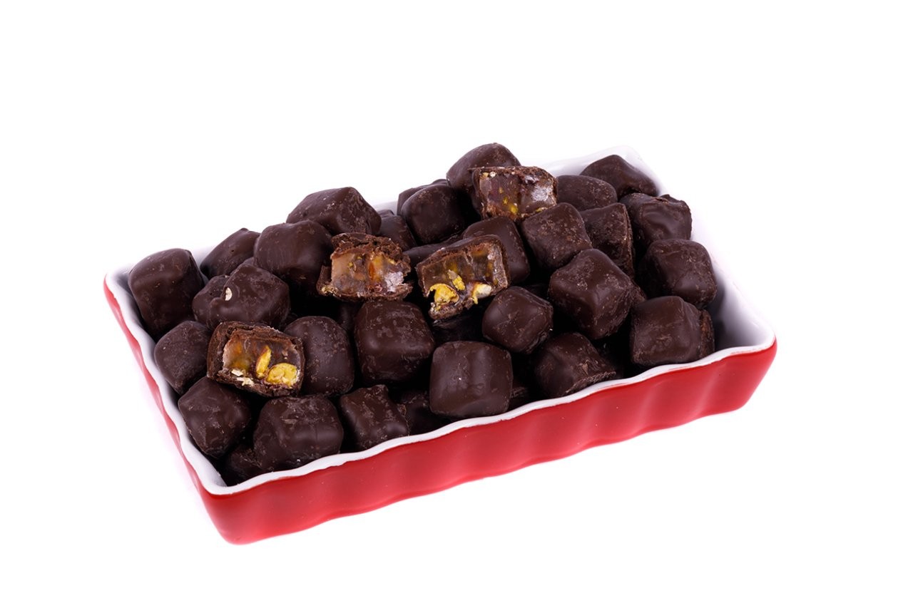 Çikolata Kaplamalı Fıstıklı Lokum, geleneksel lokum hamuruna eklenen özenle seçilmiş fıstık parçaları ile karakterizedir. Bu fıstık parçaları, lokuma çıtır bir dokuluk ve fıstığın kendine özgü lezzetini katarken, lokumun yumuşak dokusuyla birleşerek her bir lokmada eşsiz bir lezzet sunar. Üzeri çikolata ile kaplanmış olan bu lokumlar, çikolata severler için de vazgeçilmez bir lezzet sunar.